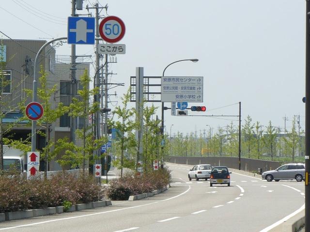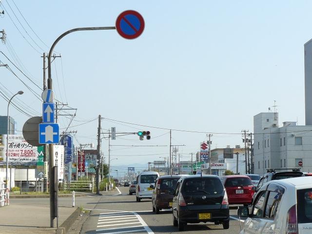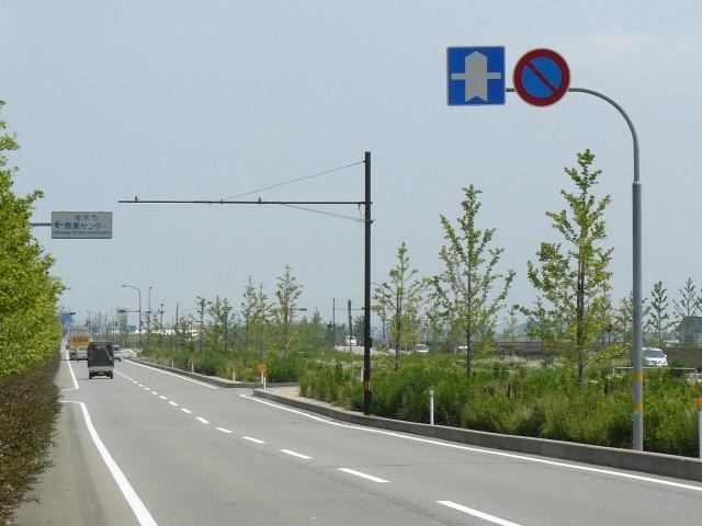 2015年2月に「大友町西」以北で上下線分離区間が開通したのに伴い、「優先道路」の指定が行われました。「優先道路」標識の設置は、信号のない交差点の手前のみの最小限の設置となっています。なお区間内は、通行帯が2以上あり「車両通行帯」の道路標示が交差点内まで設置されているため、「優先道路」標識を設置しなくても優先道路となっています。