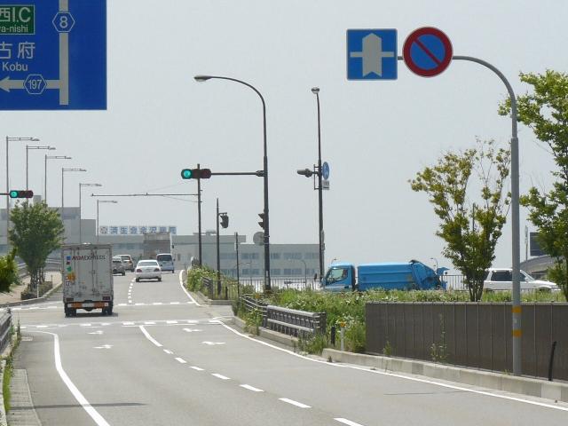 2016年4月に上下線分離区間がR8、R157「乾東」交差点まで延伸されたのに伴い、「優先道路」の指定区間も同所まで延長されました。「優先道路」標識の設置は、信号のない交差点の手前のみの最小限の設置となっています。なお区間内は、通行帯が2以上あり「車両通行帯」の道路標示が交差点内まで設置されているため、「優先道路」標識を設置しなくても優先道路となっています。
