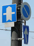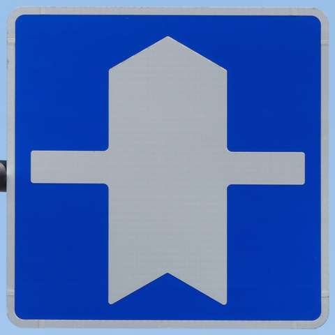 金沢外環状道路海側幹線では、上下線が分離されそれぞれが一方通行となっている長い区間で「優先道路」の指定をしており、区間内のほぼ信号交差点ごとに「優先道路」標識が設置されています。区間の大部分は、通行帯が2以上あり「車両通行帯」の道路標示が交差点内まで設置されているため、「優先道路」標識を設置しなくても優先道路となっています。ただし2012年4月まで南行き一方通行の終端部分(「福増町南」交差点南)では通行帯が1しかなく、交差する道路より狭い箇所があり、標識でしか優先道路を表すことができませんでした。