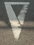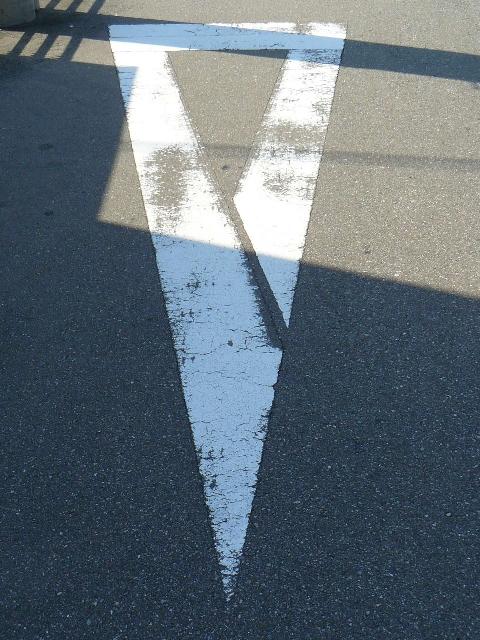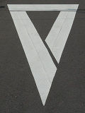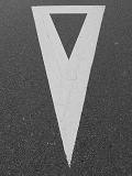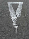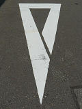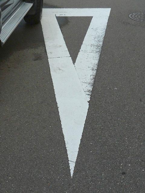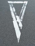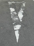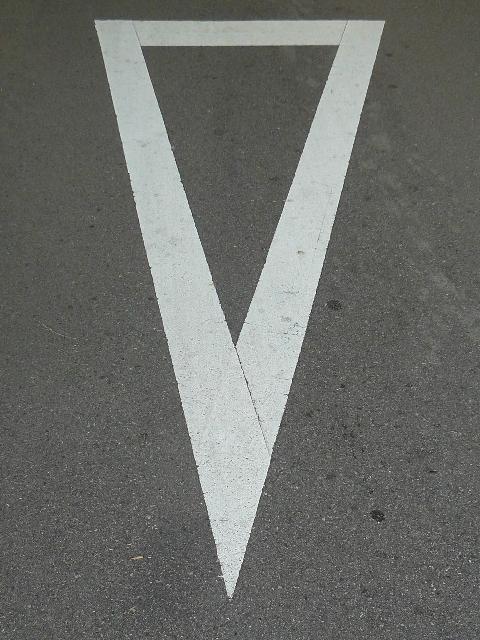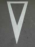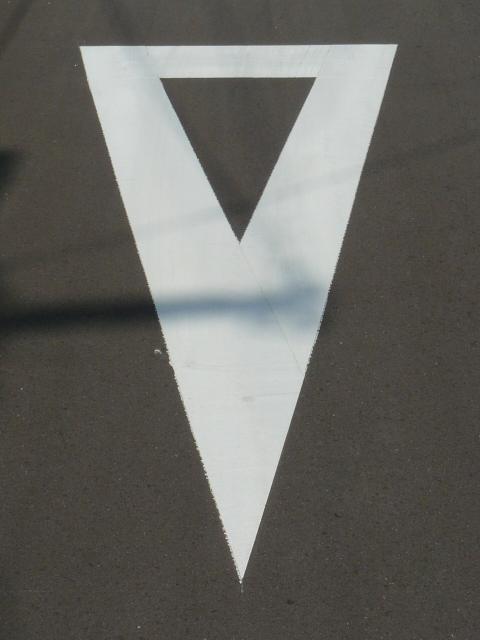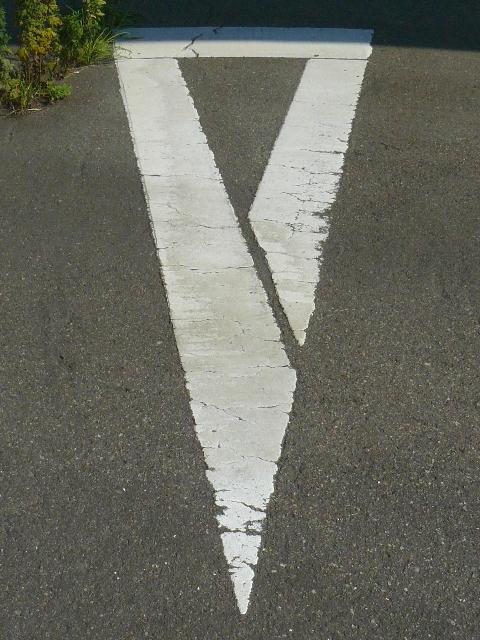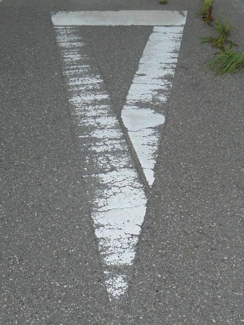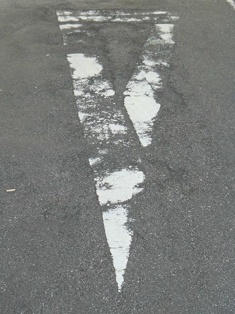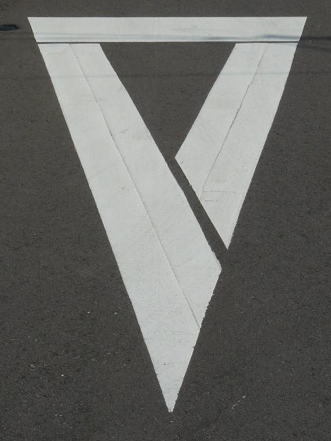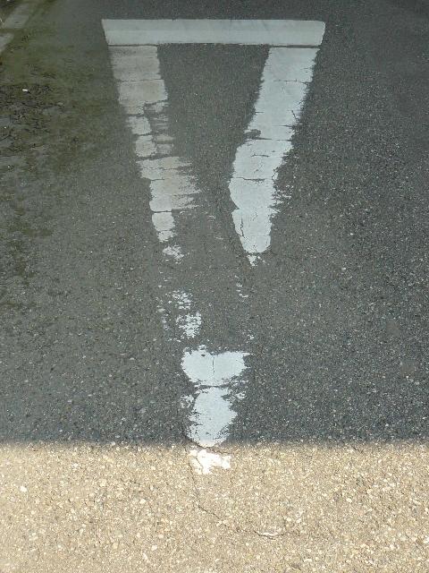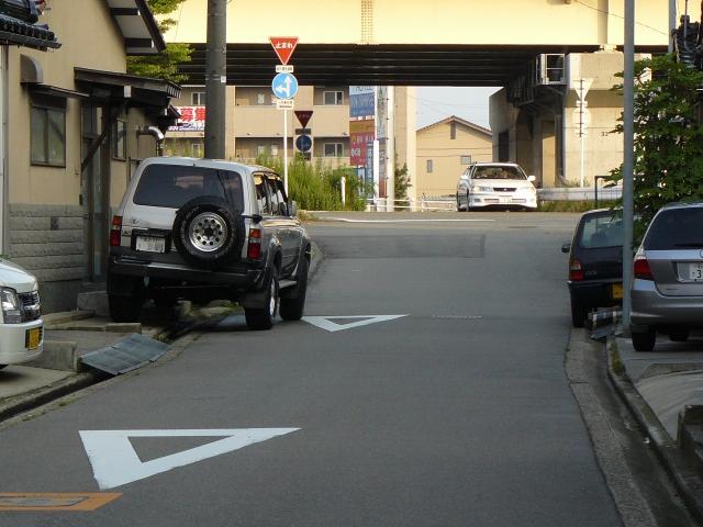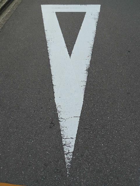 「優先道路」標識の設置されている道路に交差する道路には「前方優先道路」道路標示が設置されている場合が多いです。交差する道路が明らかに狭い場合は設置されないようです。ただし、「前方優先道路・一時停止」標識が設置されていても「前方優先道路」道路標示が設置されていなかったり、逆に「前方優先道路」道路標示が設置されていても「前方優先道路・一時停止」標識が設置されていなかったりします。また、「前方優先道路」道路標示の「▽」印が法令の例示どおり2つある場合と1つしかない場合があります。(道路が短いため「▽」印を1つしか設置できない場合もあります。)