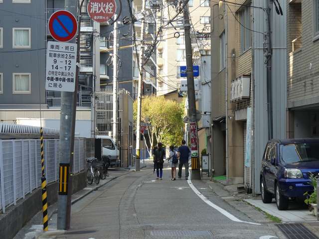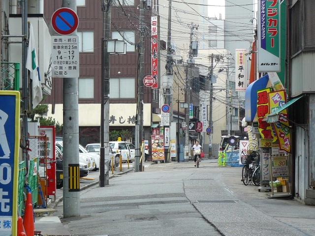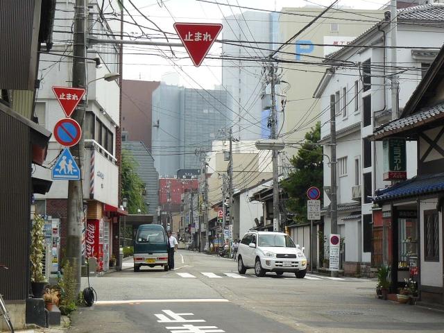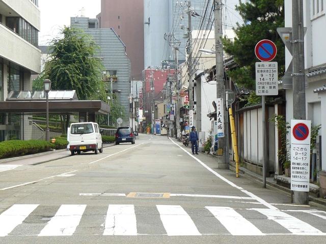 市街地の狭い二方向交通の道路約600mが「駐車余地」規制区間になっています。ただし、上で書いたように、この補助標識の表示では該当車両が余地をとったとしても駐車できないと思います。