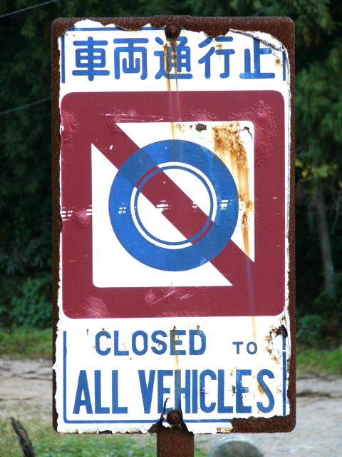 「車両通行止」となっているので、昭和35年の道路交通法施行以後のものですね。それ以前は「諸車通行止」という名称でした。