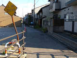 この先、自動車の通り抜けが困難になっていることに対する注意と思われますが、補助標識がないのでこれでは分かりません。