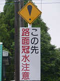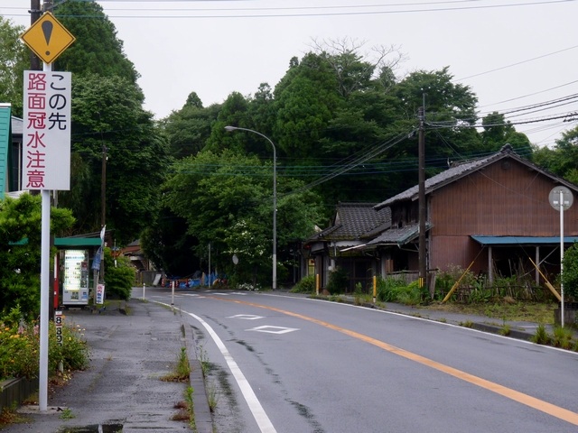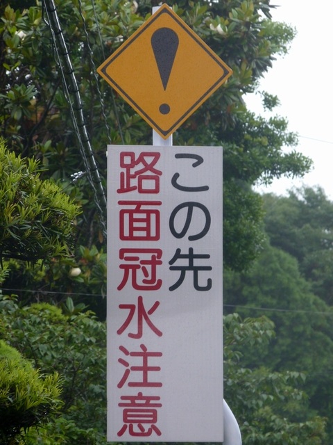 一見しただけでは、道路に起伏があることが分かりませんが、おそらくこの先は道路が低くなっていて、大雨の時などに冠水するのでしょう。