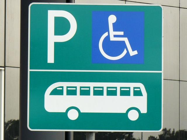 利用者の多いサービスエリアです。障害者の乗ったバス専用の駐車場です。