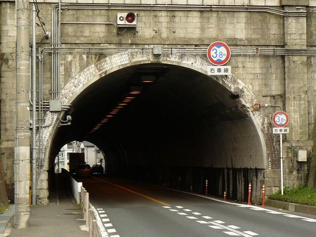 車道がトンネルの右に寄っているため、右車線のみ規制されています。