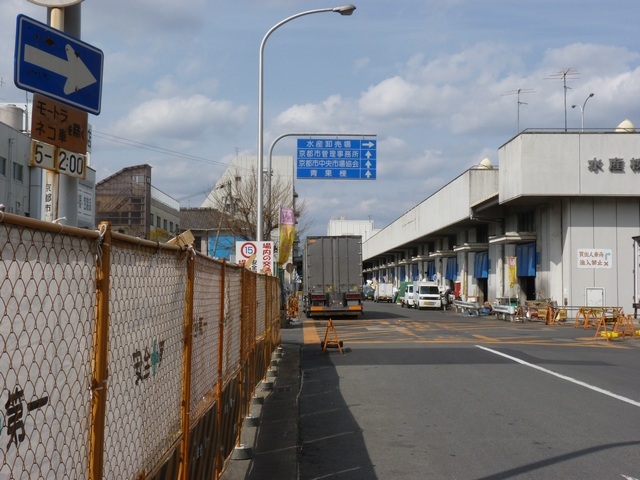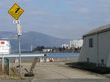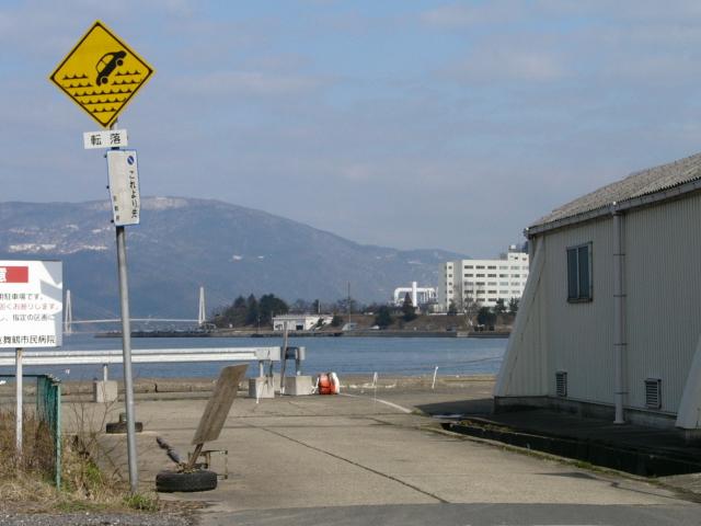 右折先は高さ限度緩和指定のされていない市道で、150mほど先に第2ふ頭の入口(「関係者以外立入禁止」看板あり)があります。 |