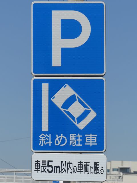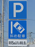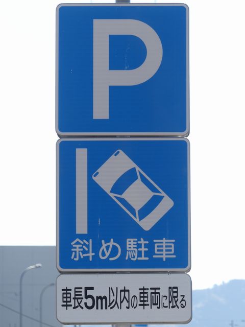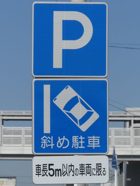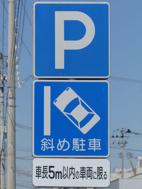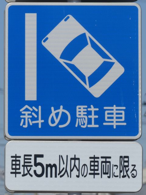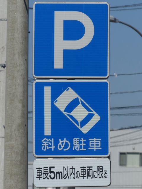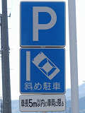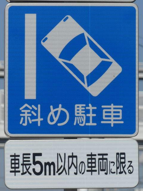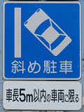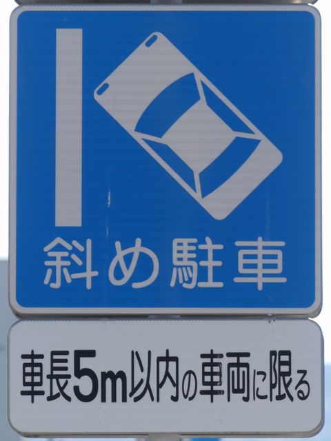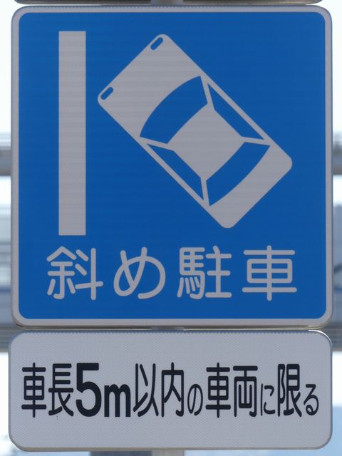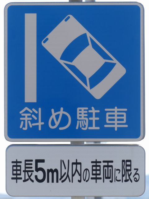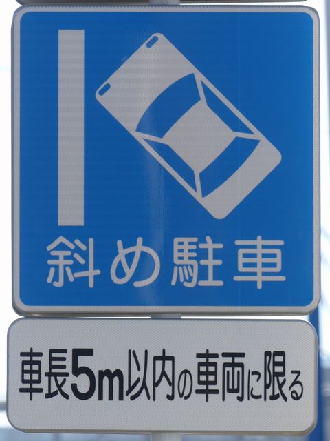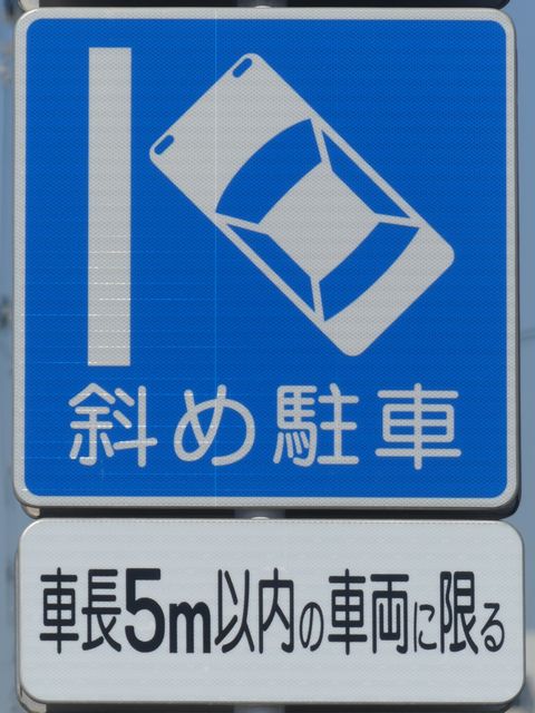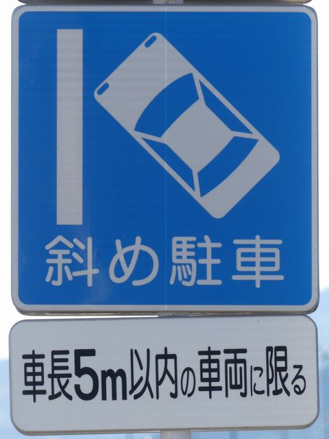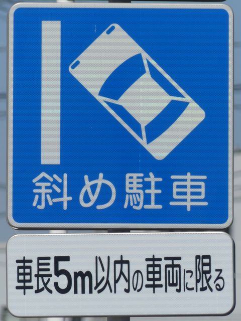 平成20年8月施行の改正標識令で規定されて以来、あまり設置例がなかった駐車方法の指定の標識です。駐車方法の指定は道路標示ですべきものなので、警察庁の通達では、標識は原則設置しないこととなっています。