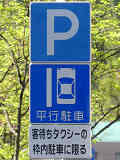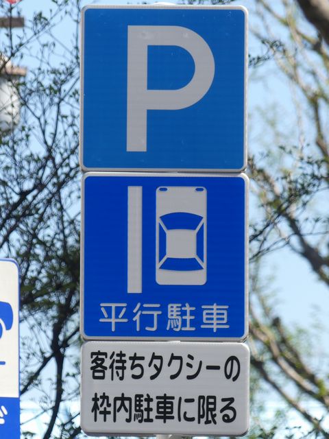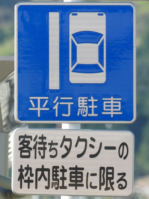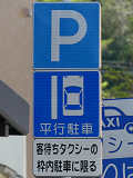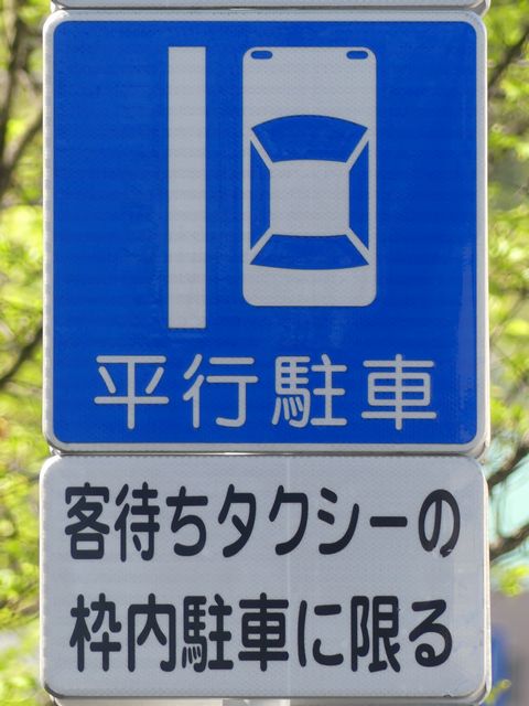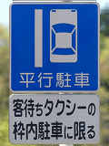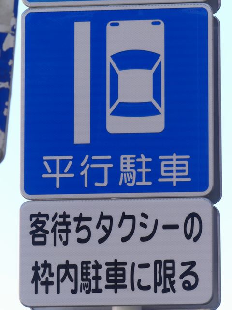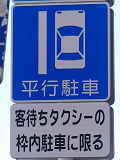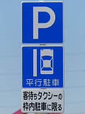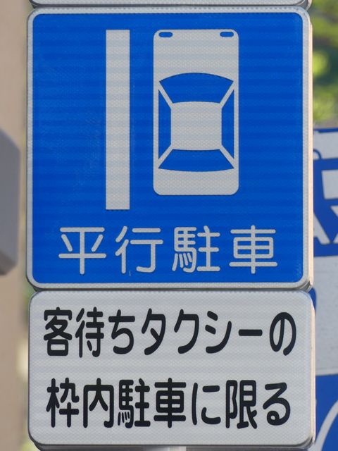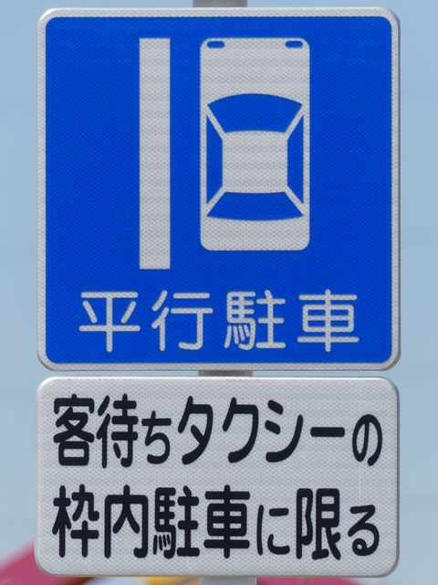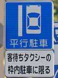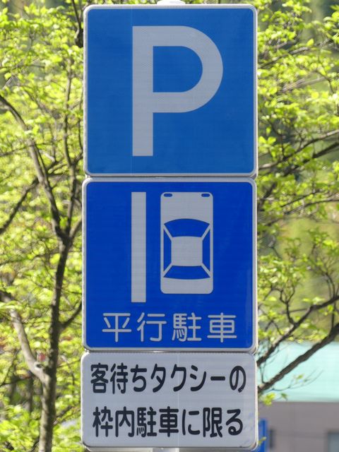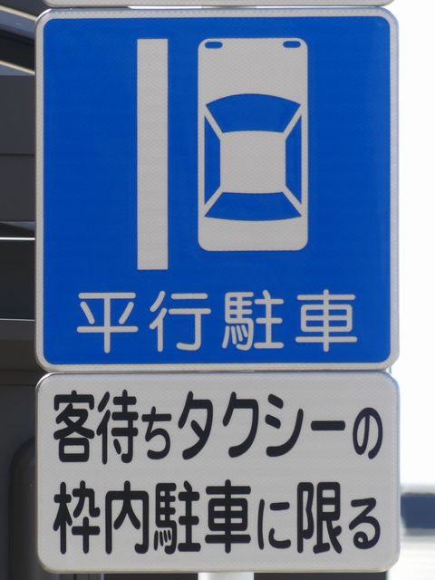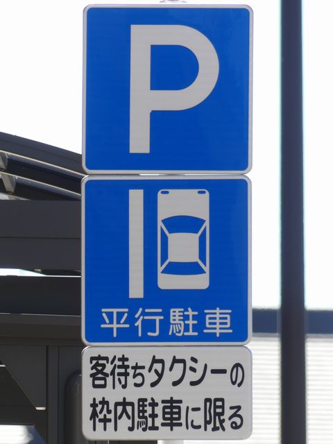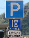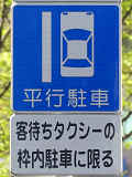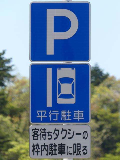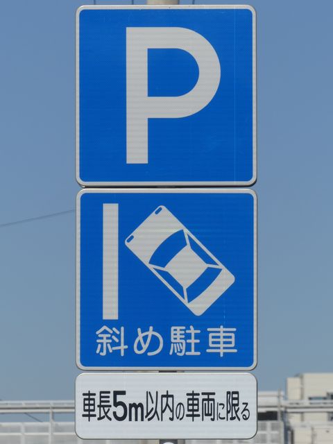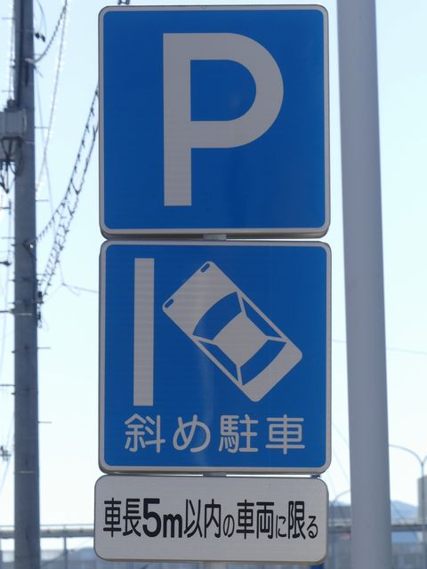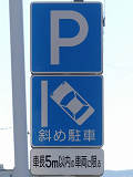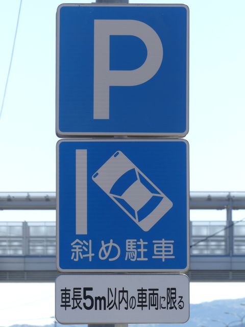 平成20年8月施行の改正標識令で規定されて以来、あまり設置例がなかった駐車方法の指定の標識です。駐車方法の指定は道路標示ですべきものなので、警察庁の通達では、標識は原則設置しないこととなっています。