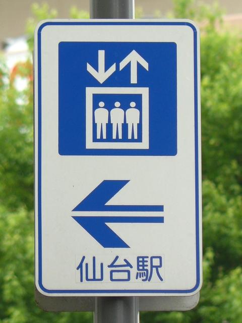 仙台駅へ行くためのエレベーターを案内しているようです。