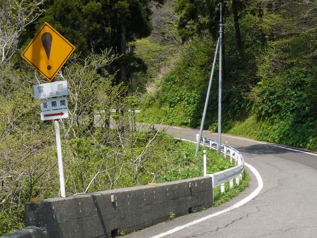 この先に「雪崩」の「その他の危険」標識があるので、これも雪崩に対する注意だと思われます。なお撮影時、この先の道路が崩落していたため、全面通行止めとなっていました。