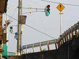 上り階段の直後に横断歩道があるため、ドライバーから見るといきなり歩行者が現れる形になります。左折時の歩行者巻き込み防止のため、反射鏡も設置されています。
