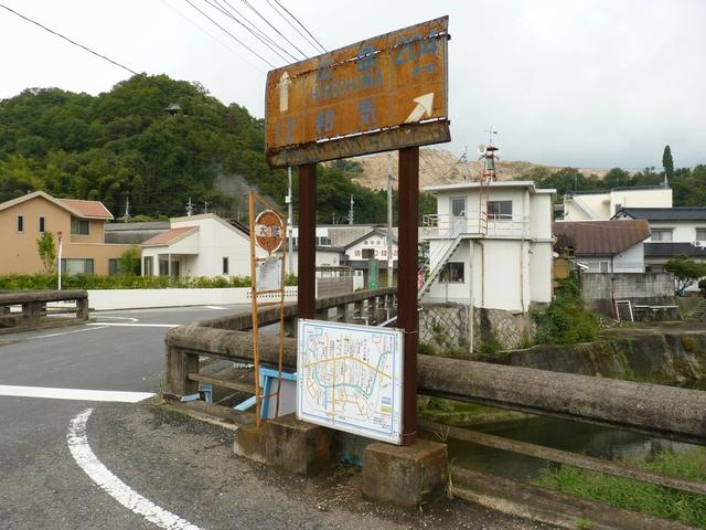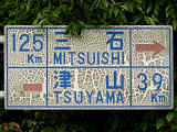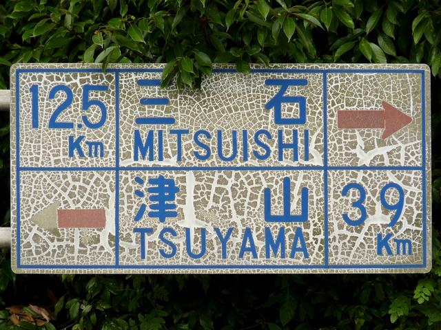 標識柱に「岡山県」のラベルあり。