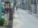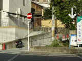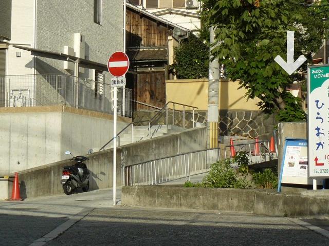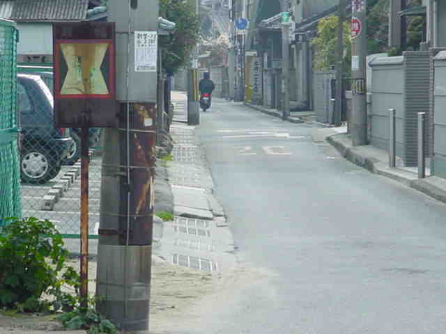 標識柱には「大阪府」の文字が確認できます。電柱の陰で何の邪魔になることもないため、残っているんですね。幅員1.0mを越す車両も普通に通っていますが、この先の交差点が狭いT字路なので注意しましょう。