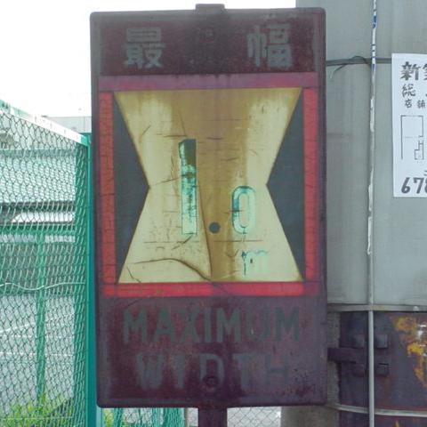 標識板は縦68cm、横40cmであり、法令で定められた大きさです。地面から標識板までは142cmです。後の大阪府公安委員会の補助標識のように、ふち(辺のみ)が裏に折り返されています。