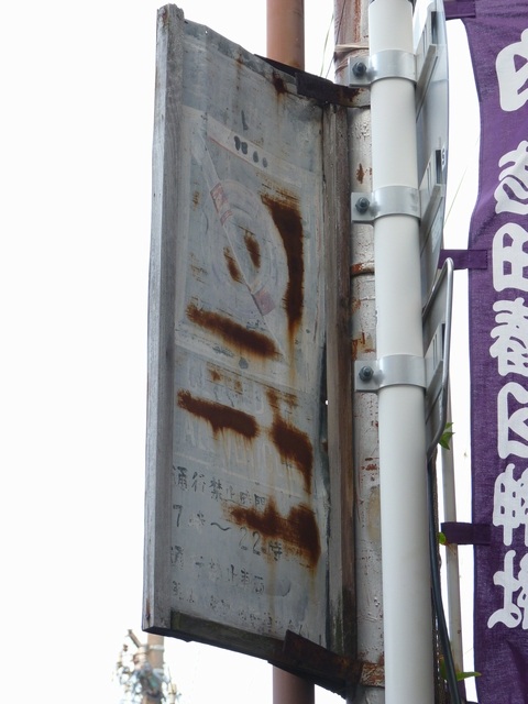 錆びてほぼ解読不可能となっていますが、うっすらと「徐」の文字が見えます。近くに幼稚園があるために規制されているようです。なお、幼稚園は昭和29年3月創立です。