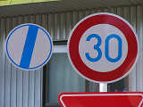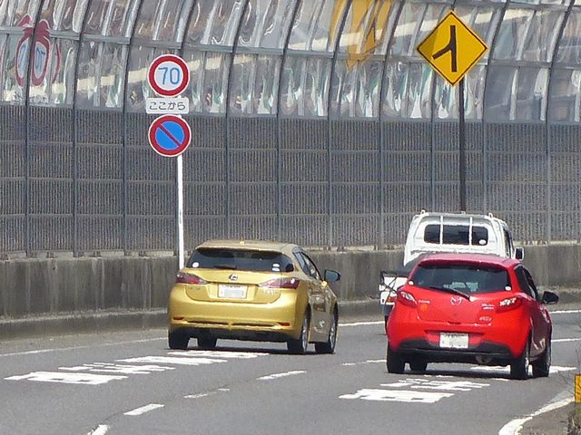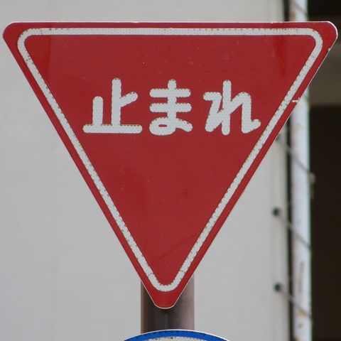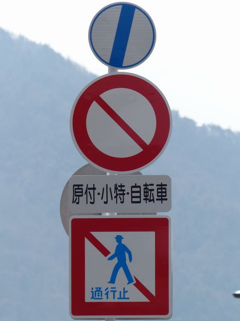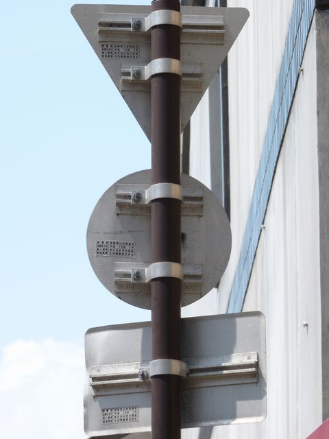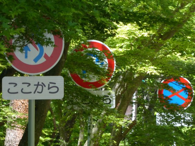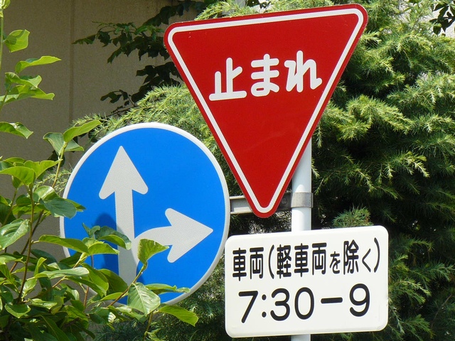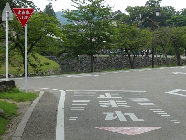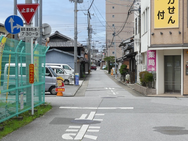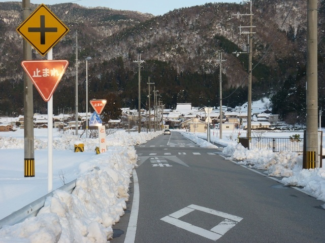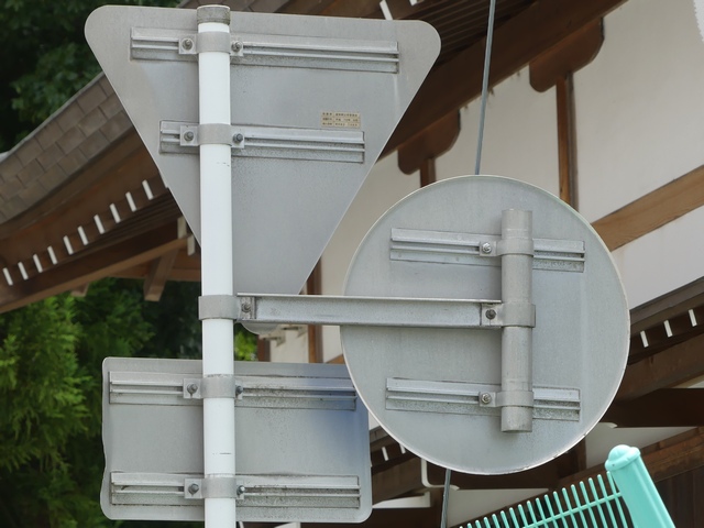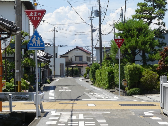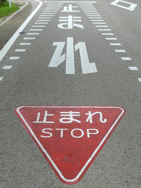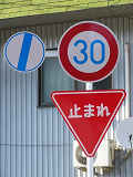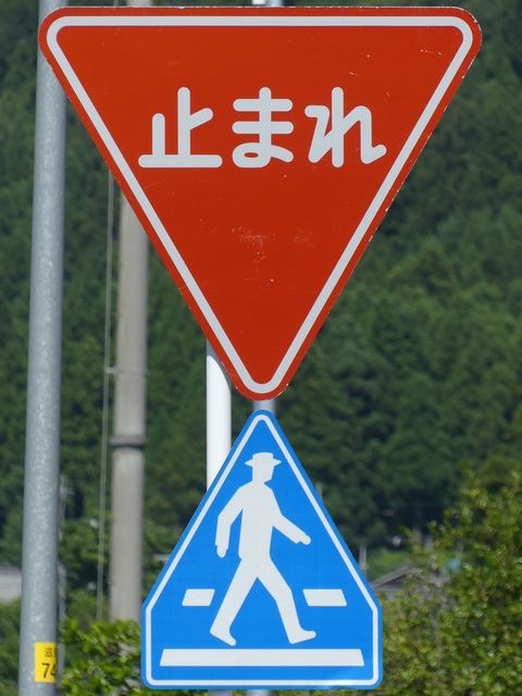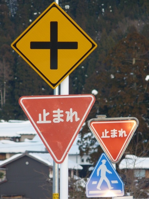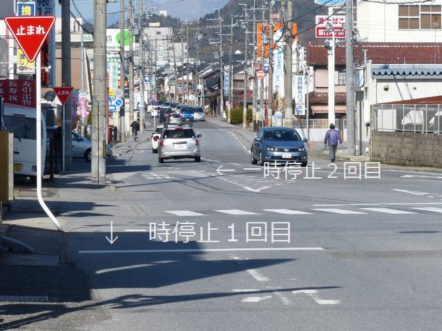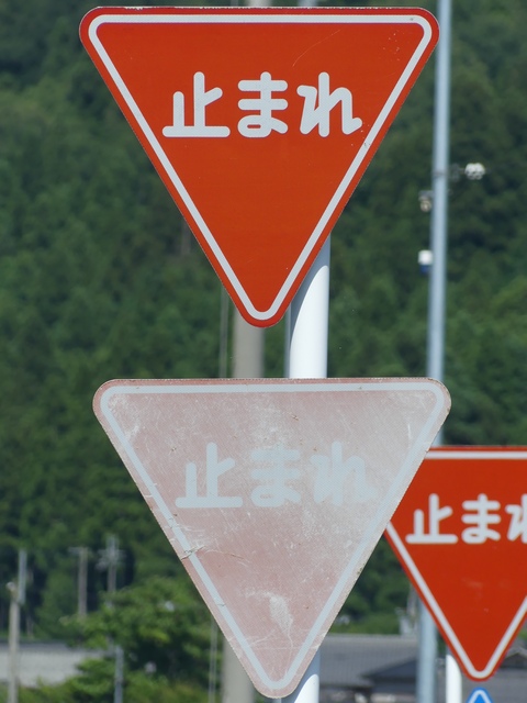 その後、手前の「一時停止」標識が1枚追加され、奥の「一時停止」標識は1.5倍拡大板に交換されました。 |