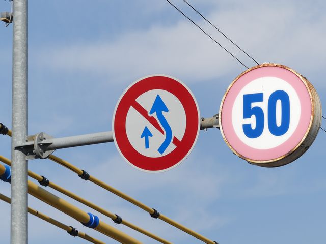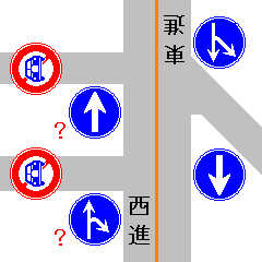 | 道路外への矢印のある「指定方向外進行禁止」 |