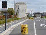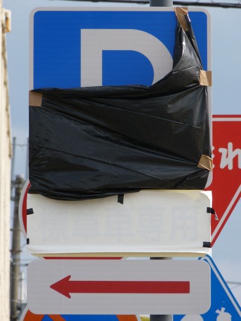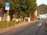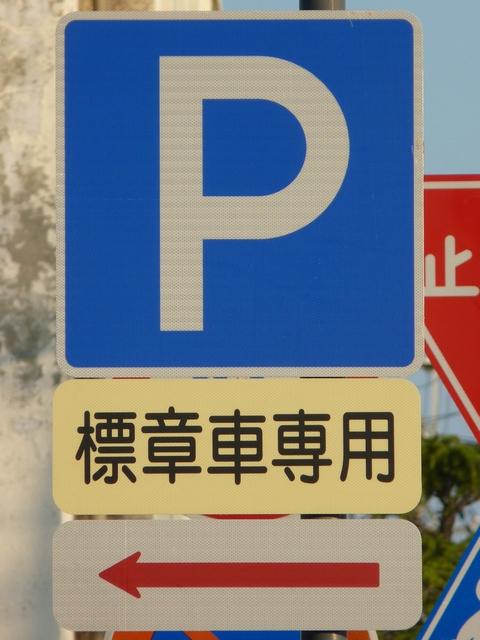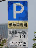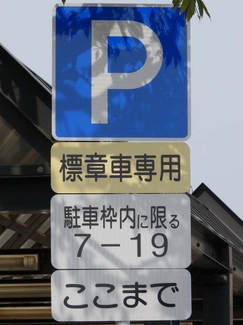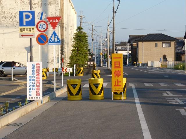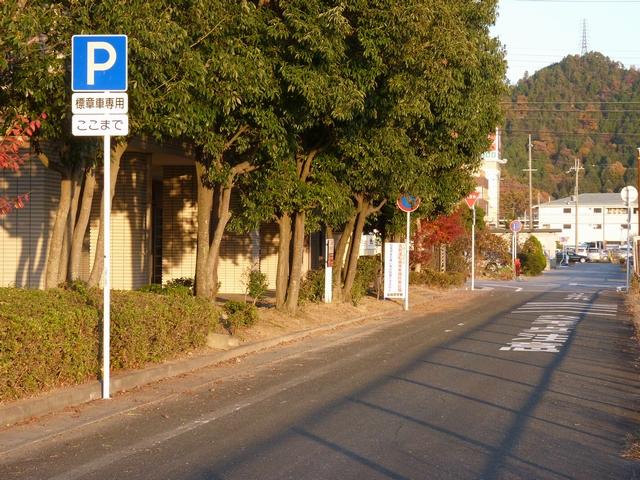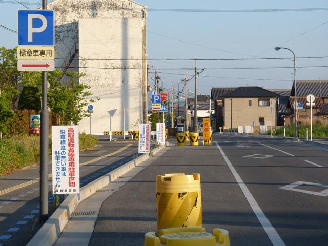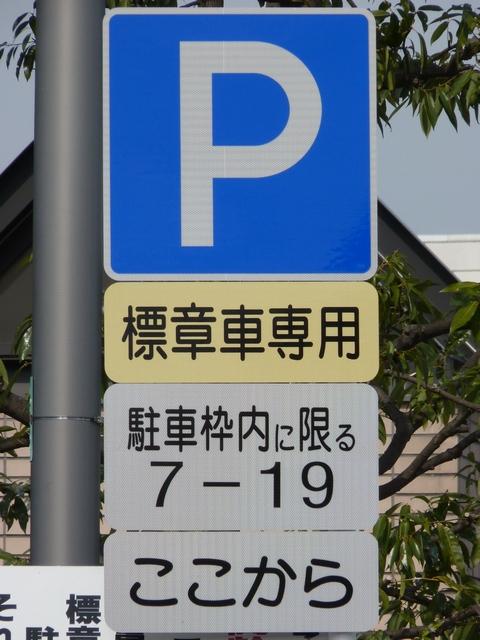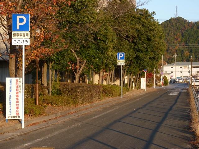 平成22年(2010年)4月19日の標識令改正で新設された「高齢運転者等標章自動車駐車可」標識です。ここでは高齢者が多く利用する施設に隣接する道路が区間として指定されています。平行駐車で5台程度が駐車可能だと思われますが、道路標示は設置されていません。