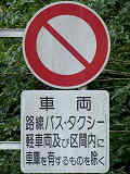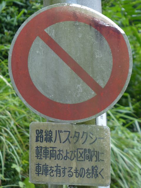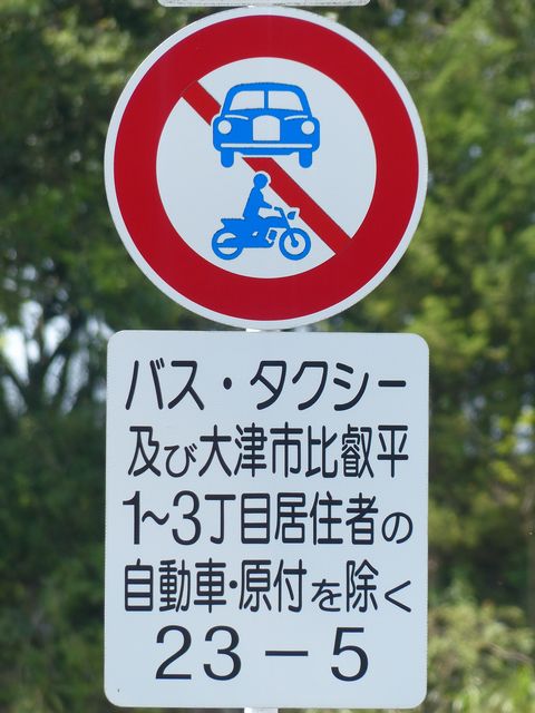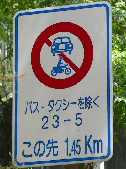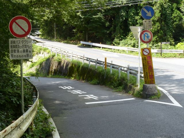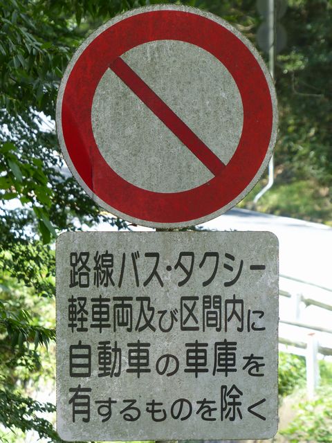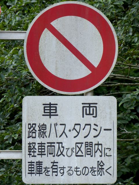 峠道の旧道で行われている規制です。旧道を抜け道として通行する車両が多かったのでしょう。自転車など軽車両も区域内に車庫がなければ通行できません。