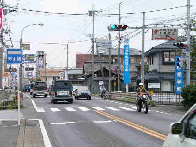 信号交差点の手前にすれ違いの困難な狭い橋があるため、その橋の上で停止しないよう、橋の手前に停止線があり、それを強調するために「停止線」標識が設置されています。