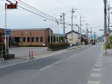 信号交差点の手前の道路に面した消防署のさらに手前に「停止線」標識が設置されています。しかし、この箇所に道路標示の「停止線」は設置されていません。信号交差点の停止線は交差点のすぐ近くに設置されていることから、この箇所に停止線を設置する根拠がありません。(緊急車両の出入口というだけでは、停止線の設置根拠になりません。)