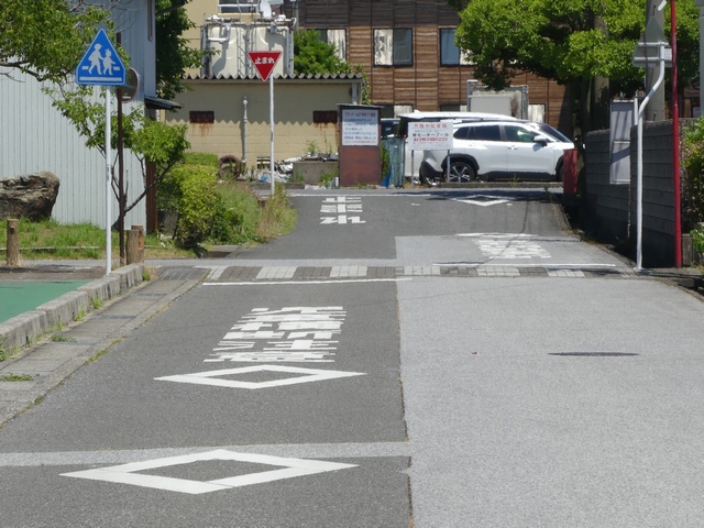 40年以上経った2025年2月に「横断歩道」標識やダイヤマーク、停止線が設置されました。