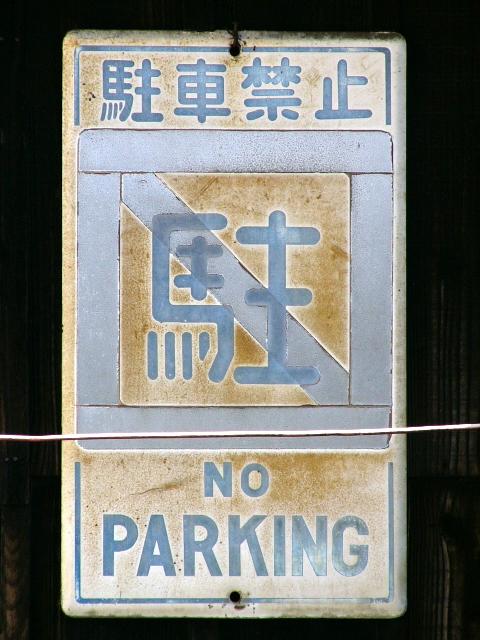 昔から無断駐車が多かったので標識を設置したそうです(当時は自立設置)。その後、小屋を建てたときに壁に架け替えたそうです。