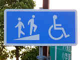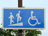 東名高速道路の浜名湖サービスエリアです。以前は標準案内用図記号「車椅子スロープ 」の看板が設置されていましたが、道路標識「傾斜路」に交換されました。