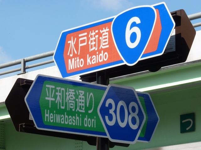 | 「国道番号」又は「都道府県道番号」と「道路の通称名」を一体化した標識 |