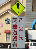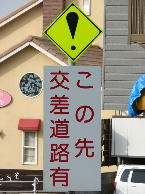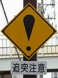 この先に信号のない横断歩道があり、さらにその先に信号のある横断歩道があります。ドライバーが先の信号に気を取られていると、手前の横断歩道で停止している車両に気付くのが遅れるので、それに対する注意喚起でしょう。横断歩道の手前にも「追突注意」の看板があります。