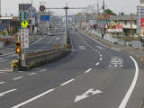 この先、交差点で中央分離帯の開口部があります。右折待ち車両や交差道路からの車両、横断歩行者に注意する必要があります。