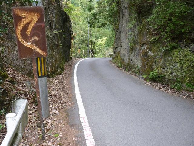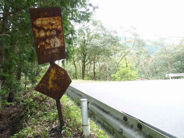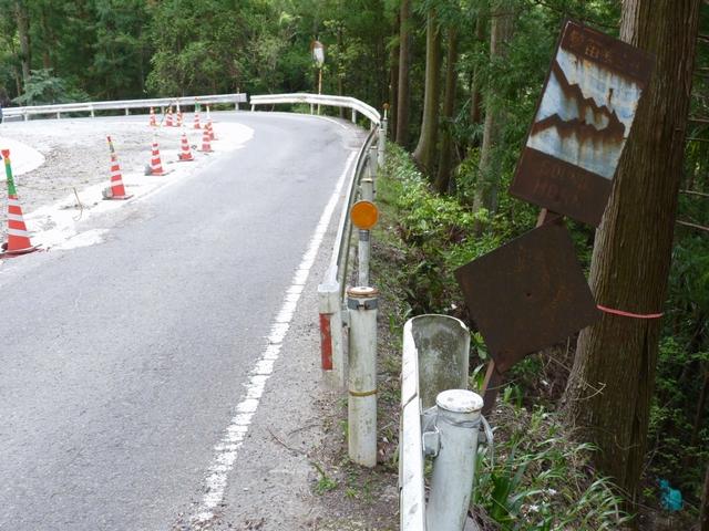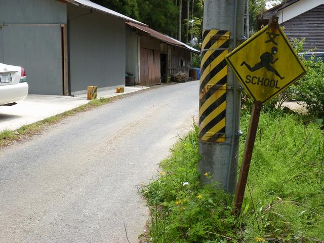 高野山の山中の狭い険道(この集落の前後で分断)に設置されています。この標識のすぐ後ろに木造校舎の白藤小学校(休校中)があります。