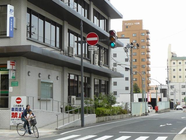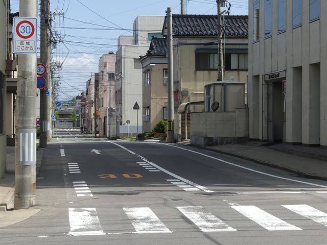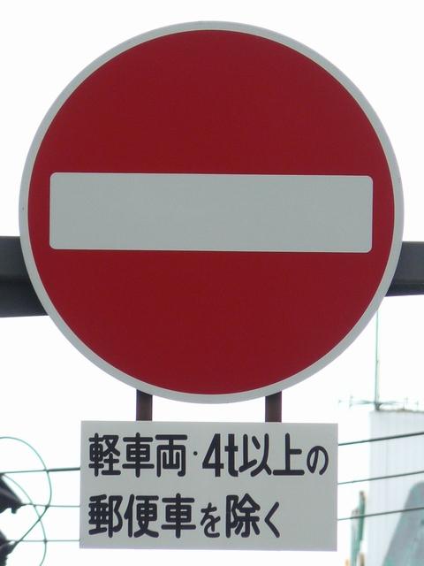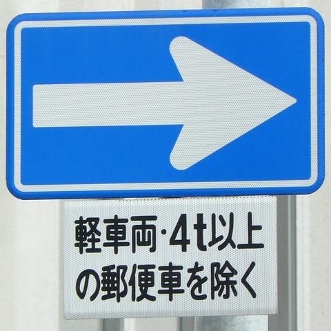 「4t以上の郵便車」が一方通行から除外されています。一方通行の区間内に郵便事業山形支店の搬入口が面していますが、一方通行の入口側は道路が狭く、車体の大きな郵便車は一方通行の出口側からでないと進入できないためです。なお、「4tの」というだけでは、何が「4t」なのか分かりません。総重量なのか最大積載量なのか・・・。前述の除外理由から考えれば最大積載量でしょうが。