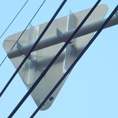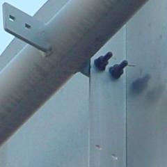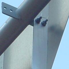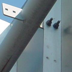 コ形金具に複数の穴が開いており、複数段階上下ずらし設置可能です。穴の数が異なるものもあります。表面にビス止めがあります。裏面は白塗装されています。 |