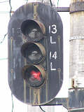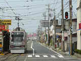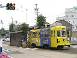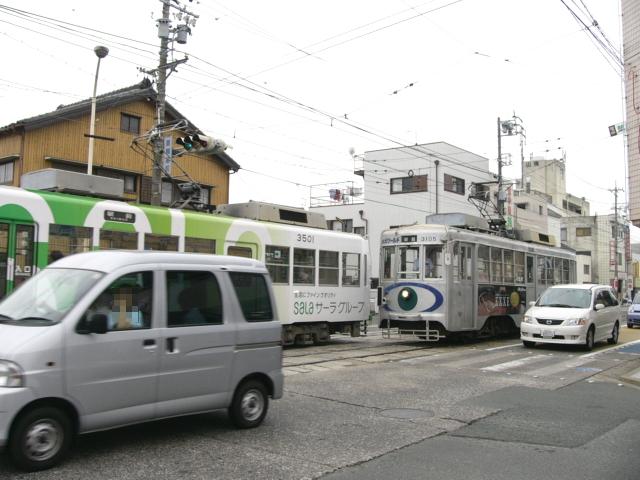 ここでは留置線から出てくる電車が黄矢印信号に従って進行します。しかし、停止位置からでは信号がまったく見えないためか、私が見たときには、路上で係員が信号を確認して進行の合図をしていました。