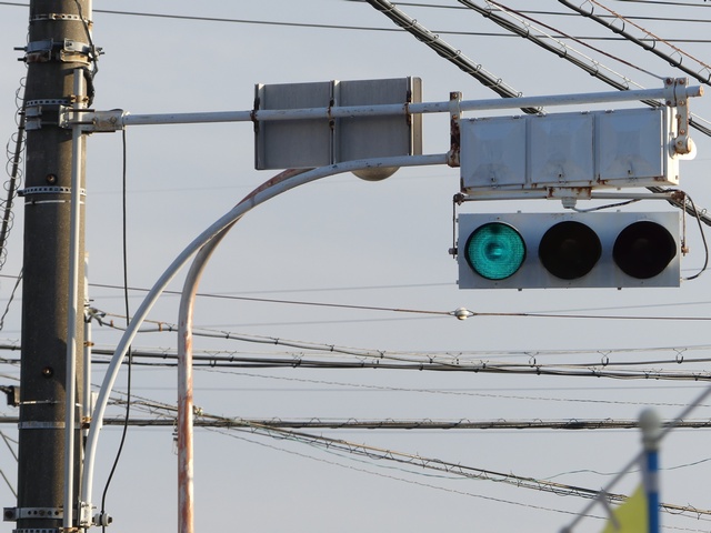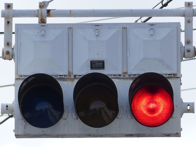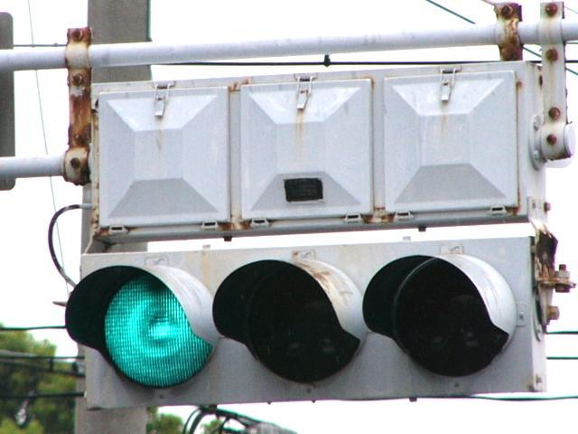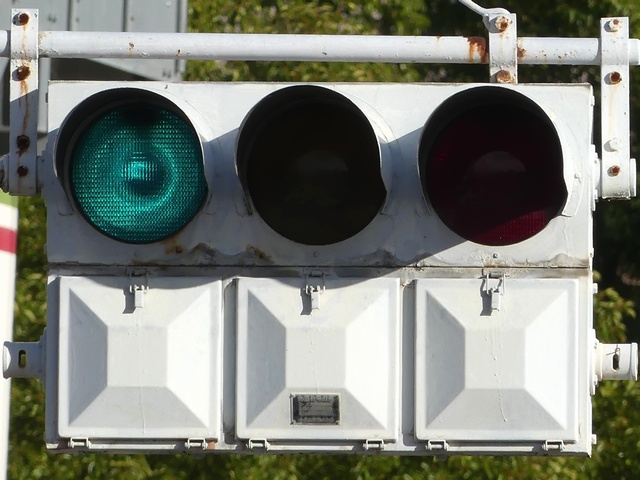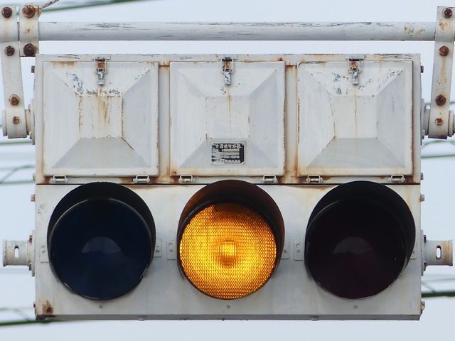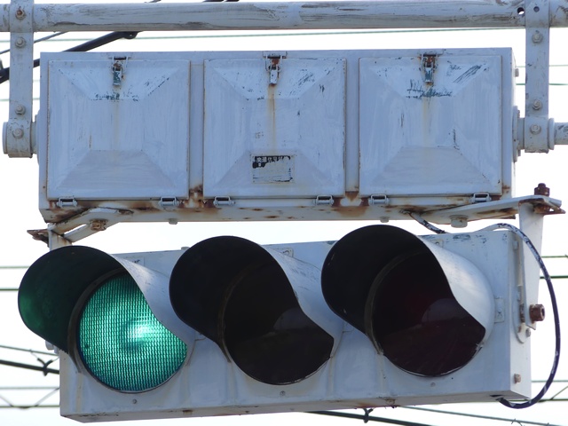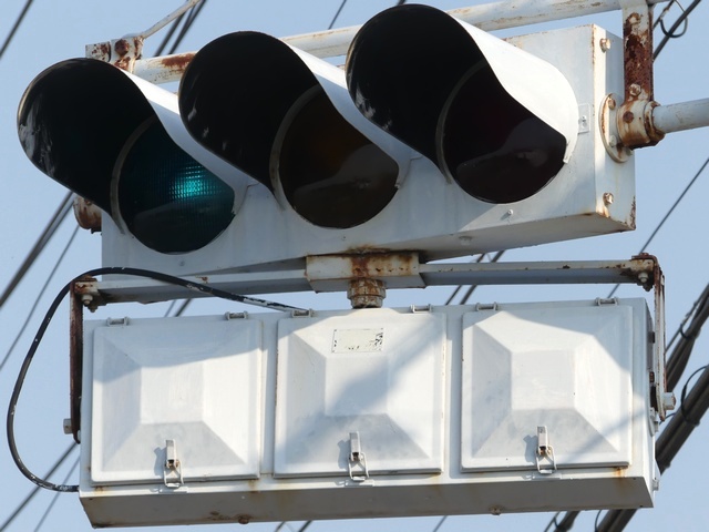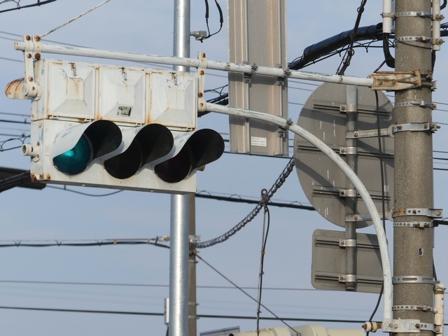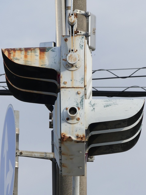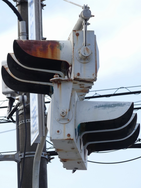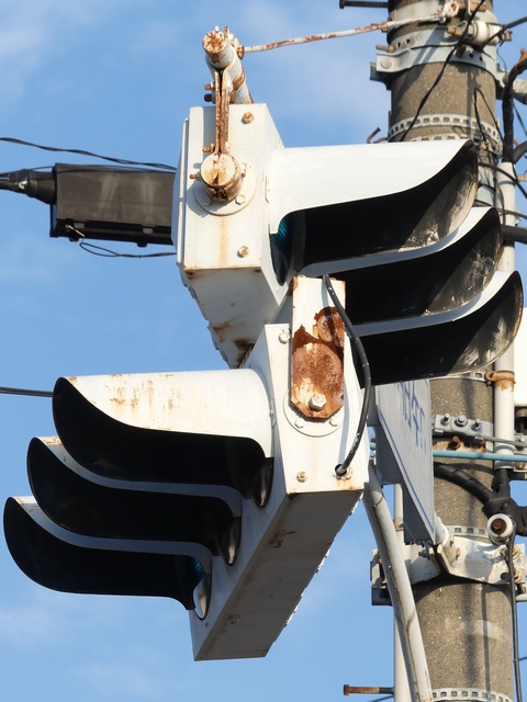 日本信号製+日本信号製です。同じメーカーの灯器ですが、灯箱の形状やレンズが異なります。