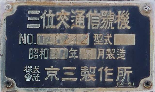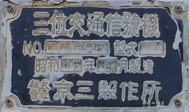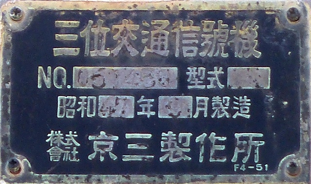 京三製作所製(昭和47年9月製)の直径250mmレンズ灯器です。現在は低コスト灯器に交換されています。