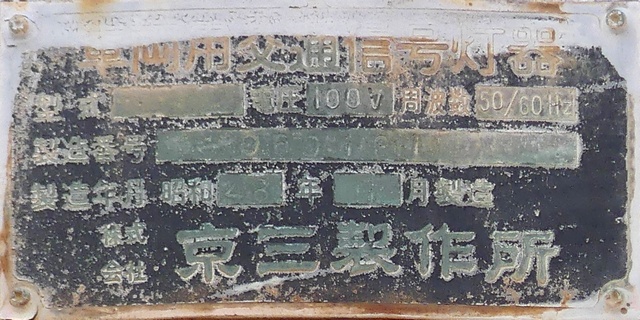 京三製作所製(昭和48年1月製)の直径250mmレンズ灯器です。その後、薄型灯器に交換されました。