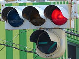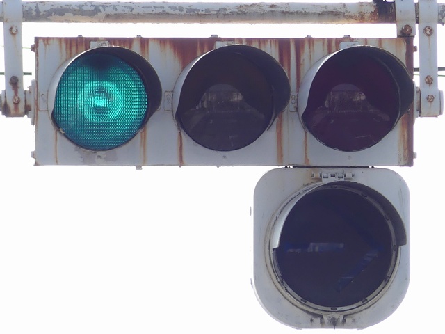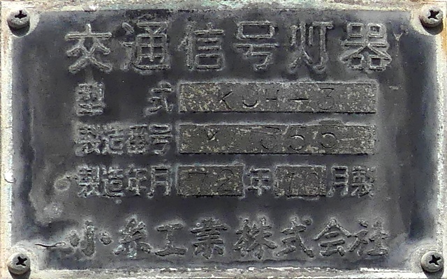 小糸工業製(1970年6月製)の直径250mmレンズ灯器に、樹脂製丸型灯器の矢印灯器を追加しています。