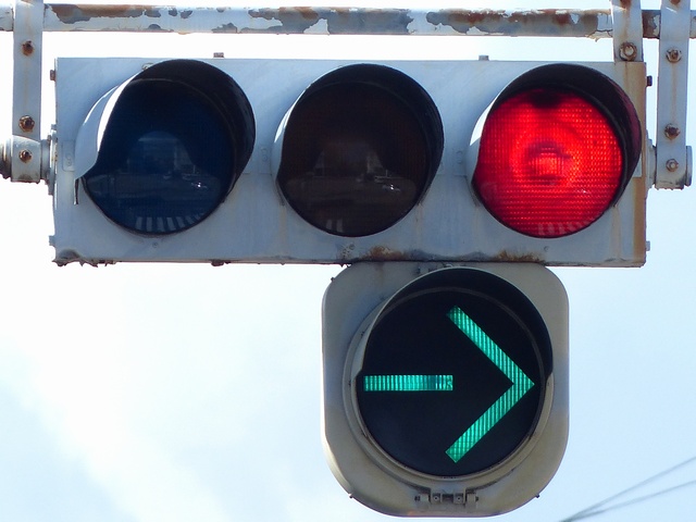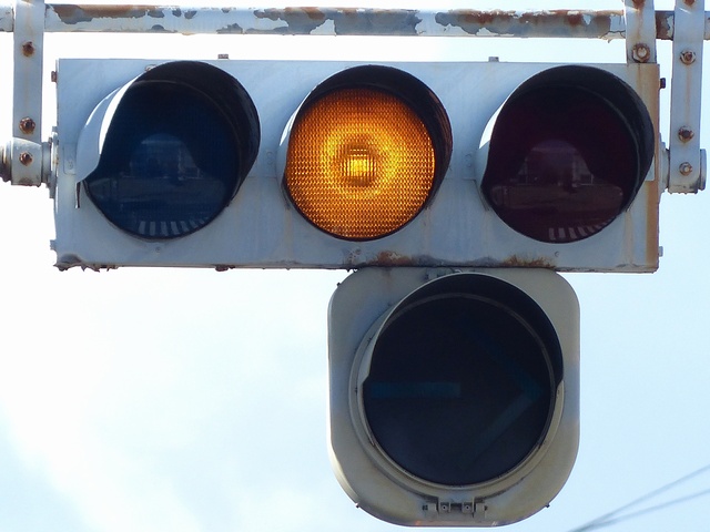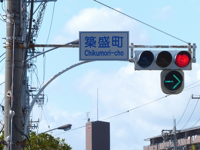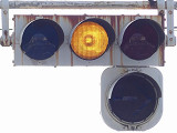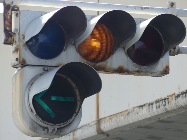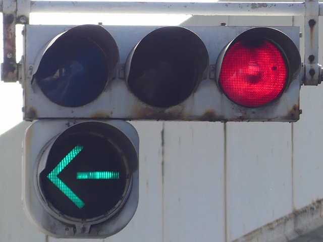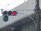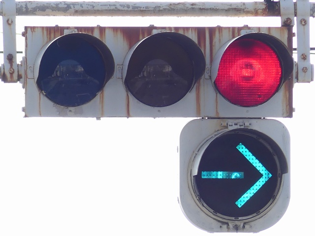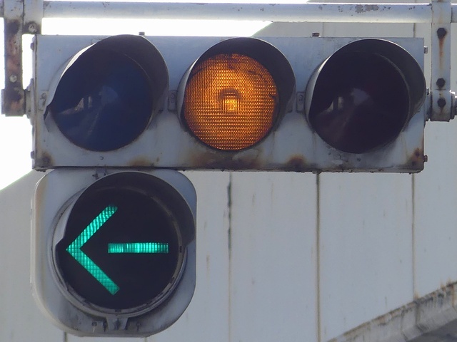 小糸工業製(1971年4月製)の直径250mmレンズ灯器に、樹脂製丸型灯器の矢印灯器を追加しています。