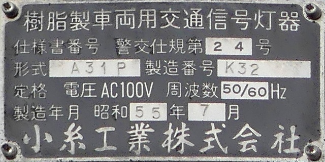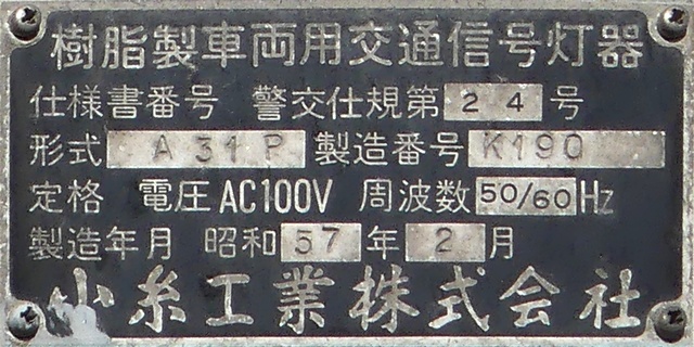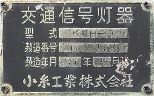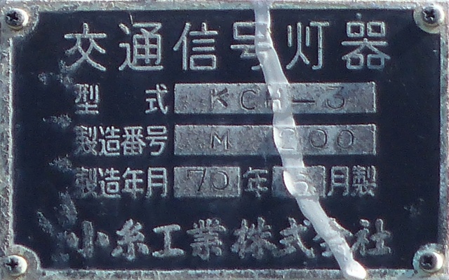 小糸工業製(1972年10月製)の直径250mmレンズ灯器に、樹脂製丸型灯器の矢印灯器を追加しています。