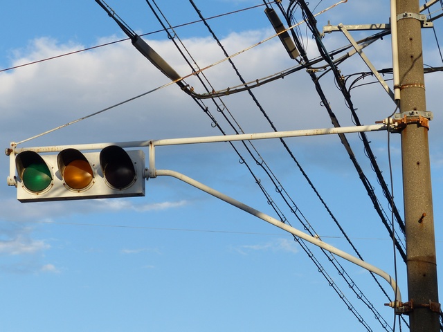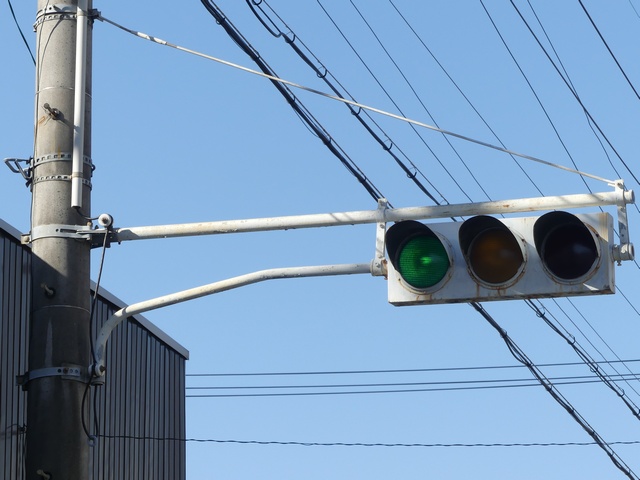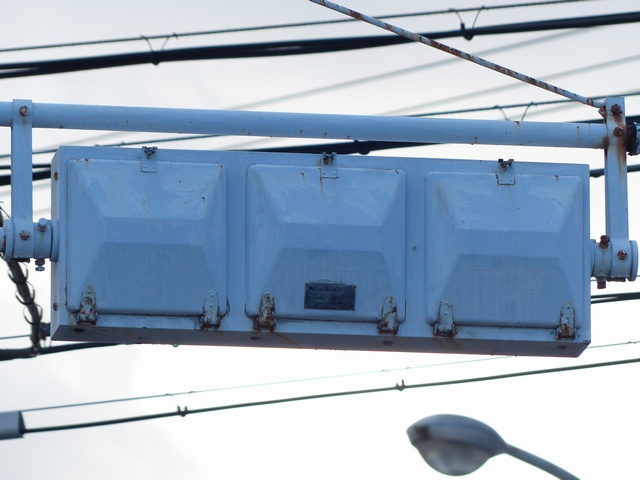日本信号製(昭和44年7月製)の直径250mmレンズ灯器です。2019年11月現在、この交差点に1台設置されていました。現在は低コスト灯器に交換されています。