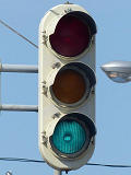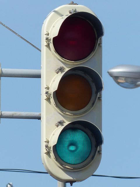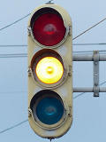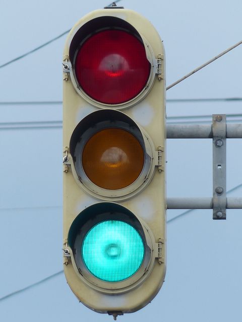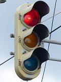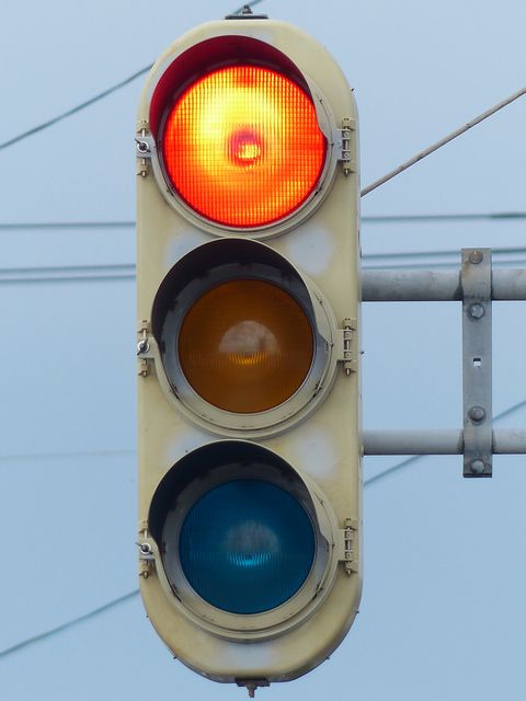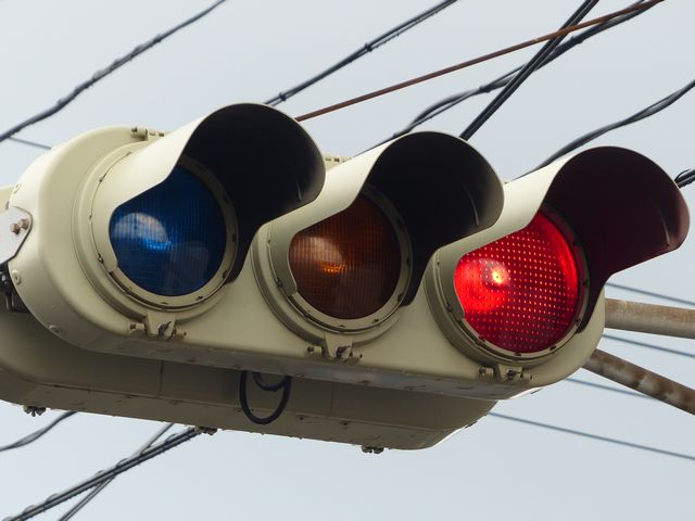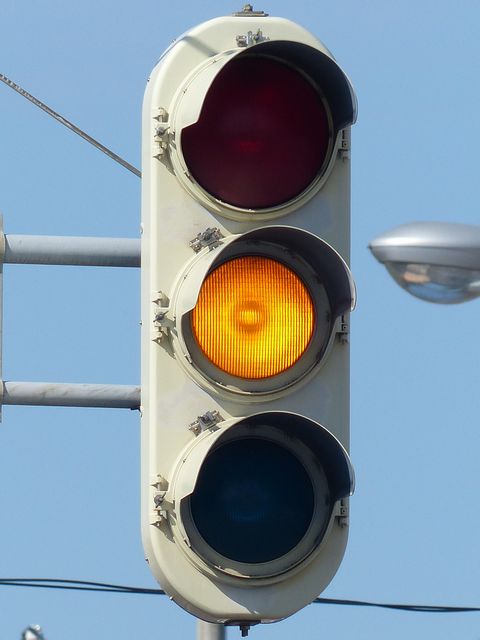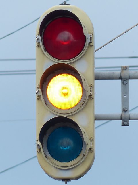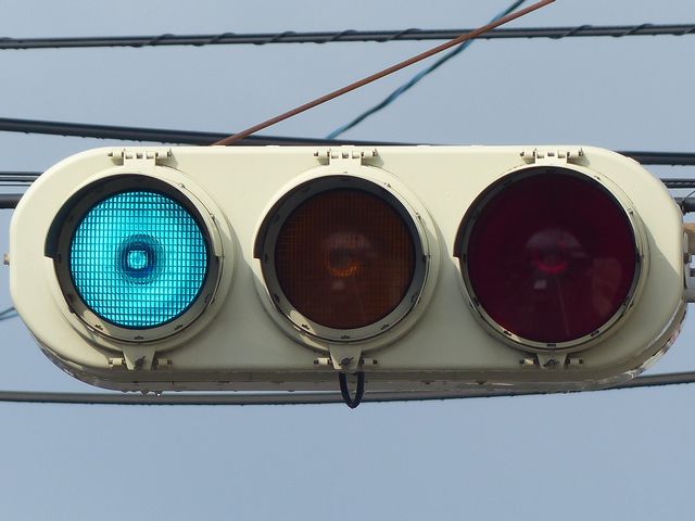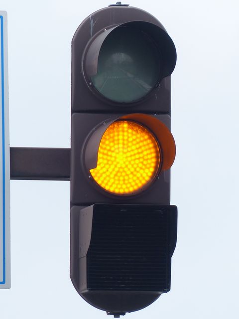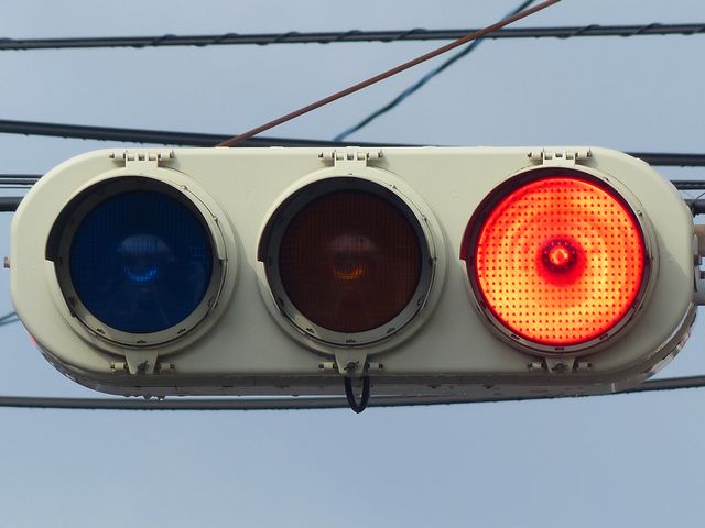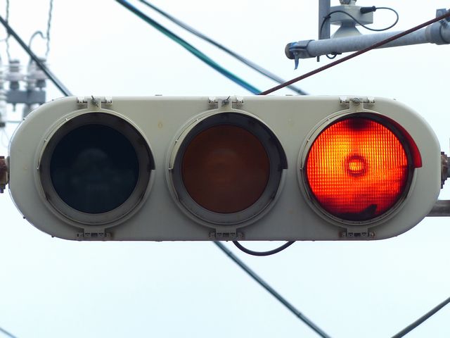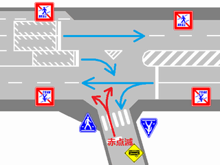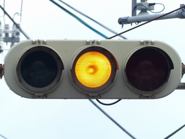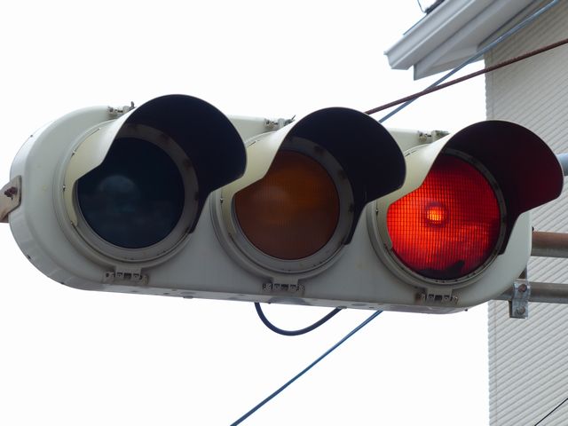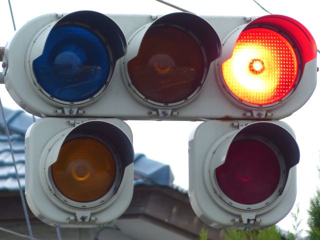黄点滅から赤点滅への切り替えの際に黄点灯の後、5秒ほど赤点灯します。一旦全赤として交差点内の車両を一掃し、主道路の青信号車両をスムーズに交差点へ進入させるためです。赤点滅から黄点滅への切り替えの際は、3秒ほど赤点灯します。単に全赤とするためだけで、特に意味はなさそうですが、あえて理由をつけるなら、従道路からの右折軽車両が発車しやすくるためでしょうか。