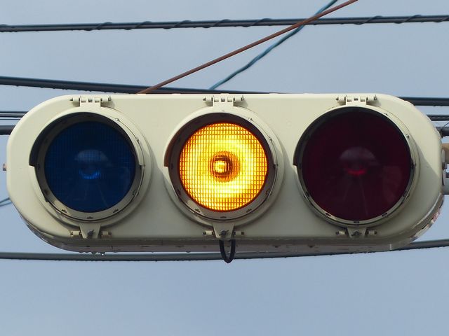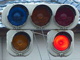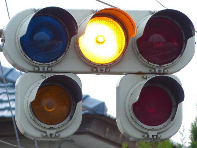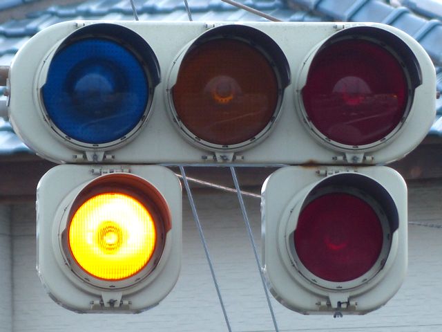 黄点灯・赤点灯と黄点滅・赤点滅を区別するために、前者は3色灯器で表示し、後者は黄灯と赤灯の追加灯器を設置し、それで表示しています。
