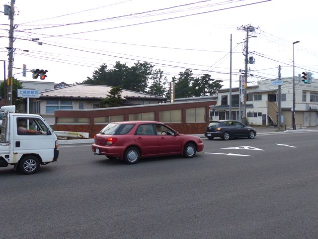 踏切から約25m先にあるT形の信号交差点で、踏切から交差点へ進入する側が従道路となっています。