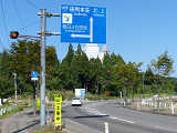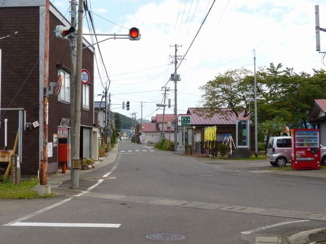 秋田県では、複数方向1灯点滅を通常の信号機のように、個別にアームに設置する場合があります。ここでは信号柱を2本で済ませるため、両面設置となっています。
