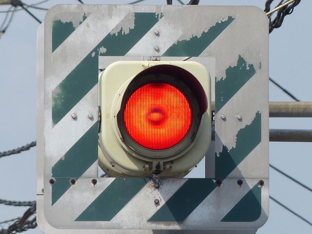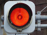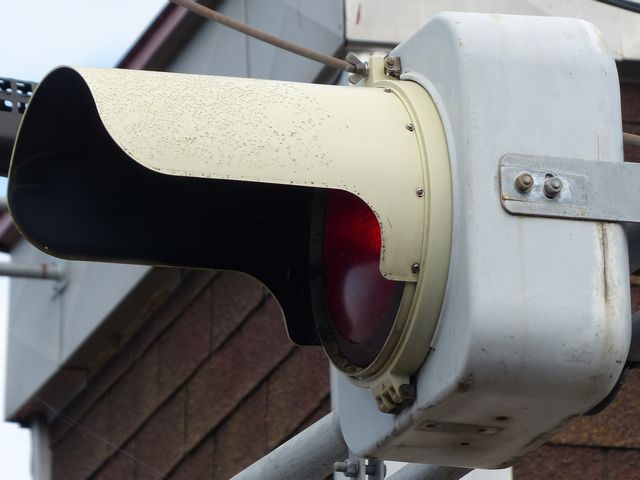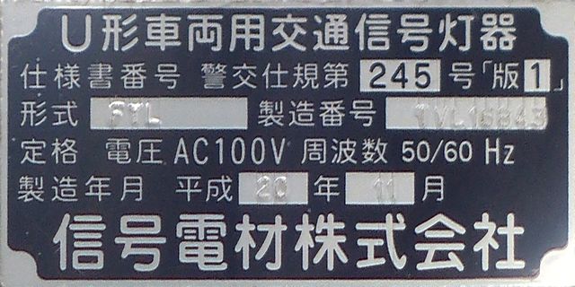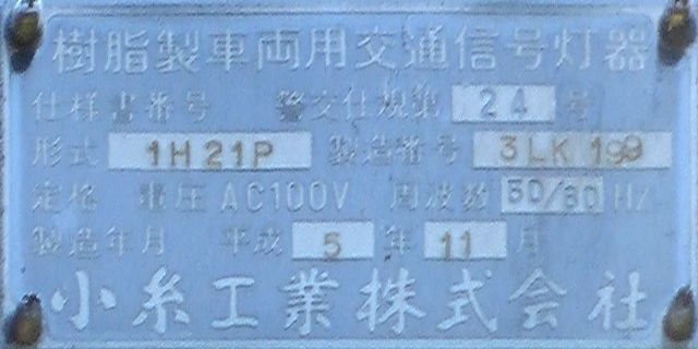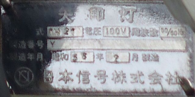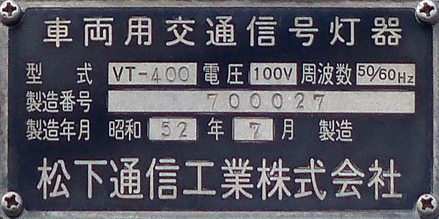灯器は、松下通信工業製の初期樹脂製丸型灯器の1位式灯器です。