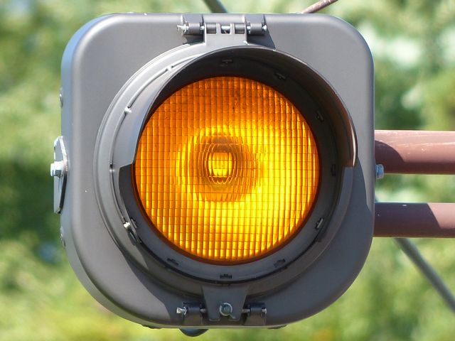 秋田県の標準的な予告灯です。前方の信号に関わらず、常時黄点滅しています。