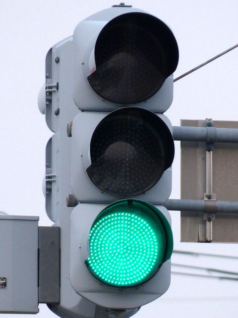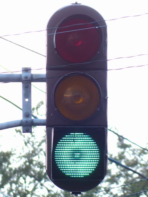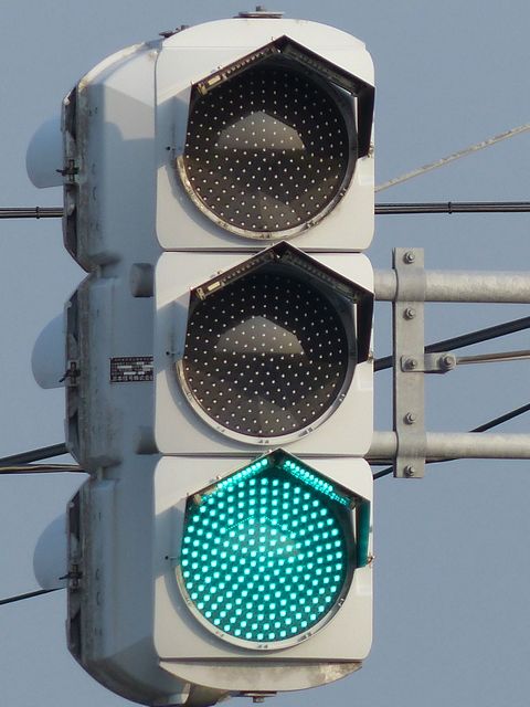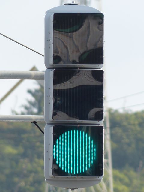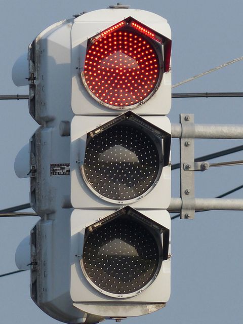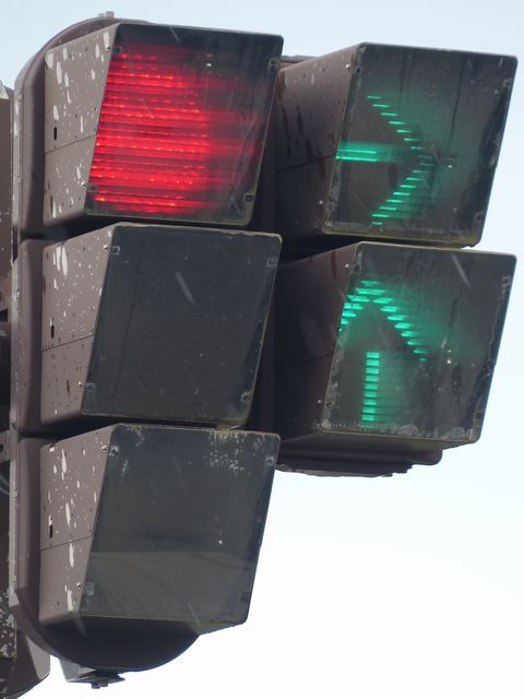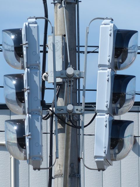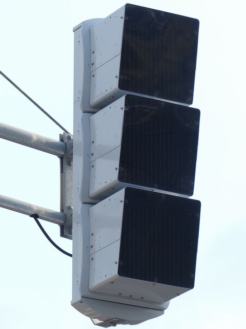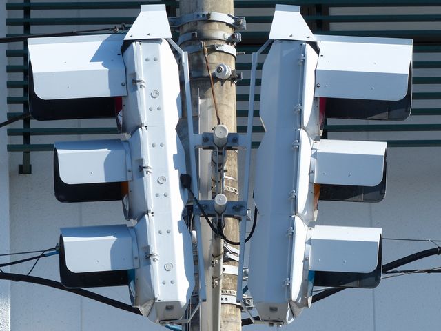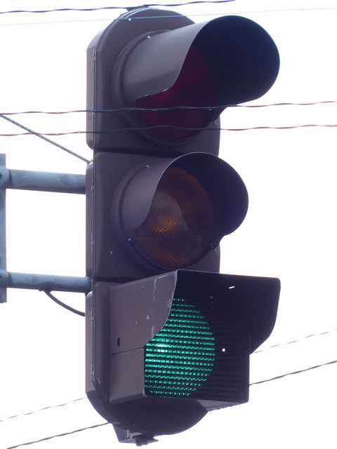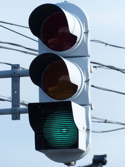 この交差点では、北進用補助灯器として1基のみ設置されています。 |